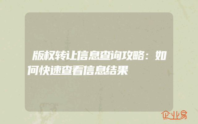- 版权转让信息查询攻略:如何快速查看信息结果