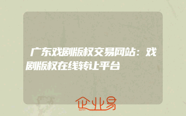 - 广东戏剧版权交易网站:戏剧版权在线转让平台