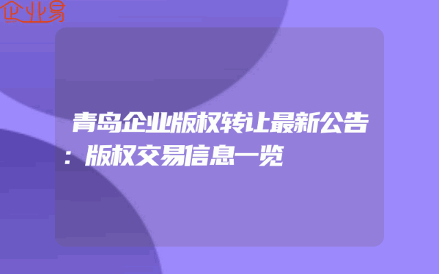 - 青岛企业版权转让最新公告:版权交易信息一览