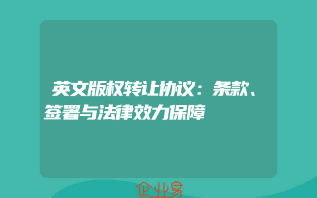 - 英文版权转让协议:条款、签署与法律效力保障