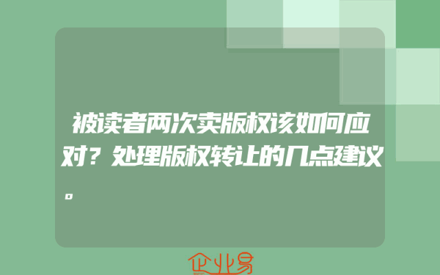 - 被读者两次卖版权该如何应对?处理版权转让的几点建议。