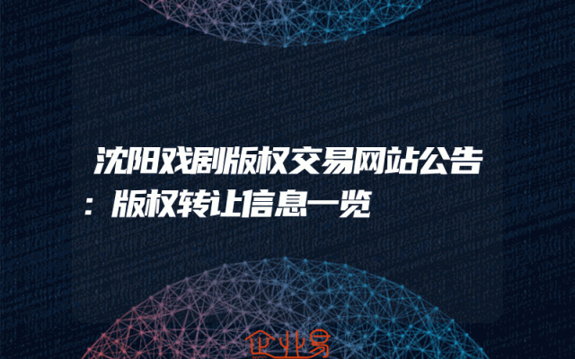 - 沈阳戏剧版权交易网站公告:版权转让信息一览