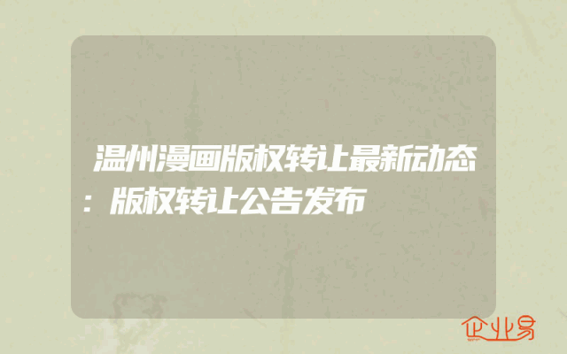 - 温州漫画版权转让最新动态:版权转让公告发布