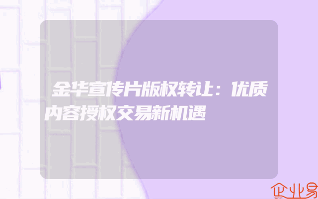 - 金华宣传片版权转让:优质内容授权交易新机遇