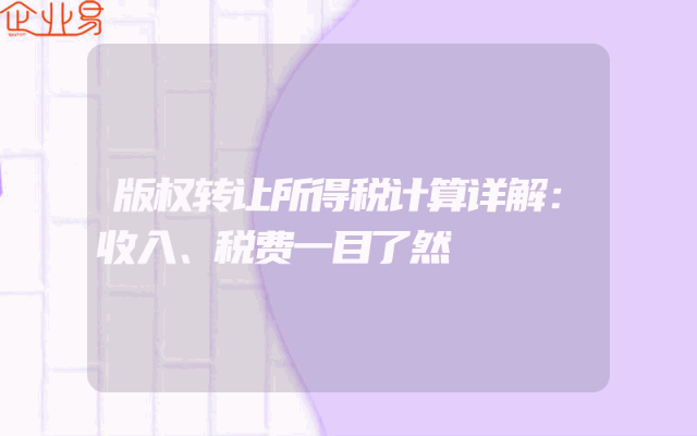 - 版权转让所得税计算详解:收入、税费一目了然在商业交易和版权活动中,版权转让是常见的一项活动。它涉及到许多方面,包括收入与税费的计算。本文将详细解析版权转让的所得税计算,帮助读者对收入和税费有一个