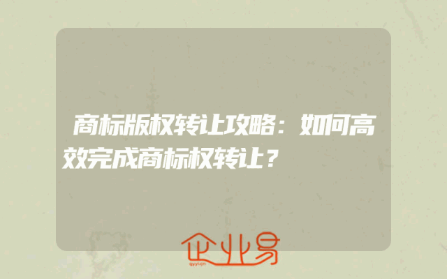 - 商标版权转让攻略:如何高效完成商标权转让?