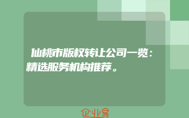 - 仙桃市版权转让公司一览:精选服务机构推荐。