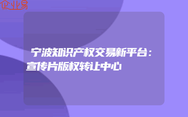 - 宁波知识产权交易新平台:宣传片版权转让中心