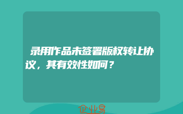 - 录用作品未签署版权转让协议,其有效性如何?一、版权转让协议的重要性在数字化时代,知识产权的保护尤为重要。版权转让作为知识产权交易的重要环节,涉及作品的权益分配和使用权限的界定。因此,版权转让协议成为了保障各方权益的基本法律文件。然而,在某些