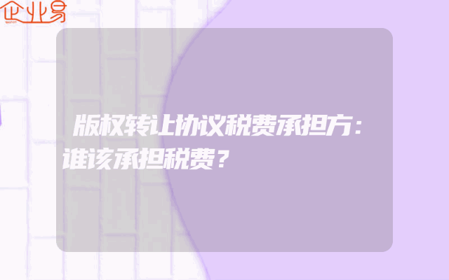 - 版权转让协议税费承担方解析:谁该承担税费?一、版权转让协议中的基本内容版权转让协议是转让方与受让方之间就特定作品的版权转让事宜达成的约定。在版权转让过程中,税费的承担问题一直是双方关注的焦点之一。版权转让协议中通常包含作品的描述、转让范围、