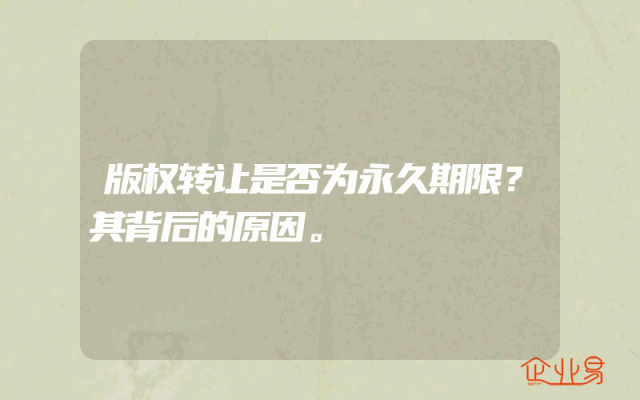 - 版权转让是否为永久期限?解析其背后的原因一、版权转让的概念及特点版权转让,是指版权人将其所享有的著作权中的部分或全部权利,依法定程序转移给他人的行为。版权转让通常涉及多个权利内容,如复制权、发行权、表演权等。在版权转让过程中,双方需明确约定