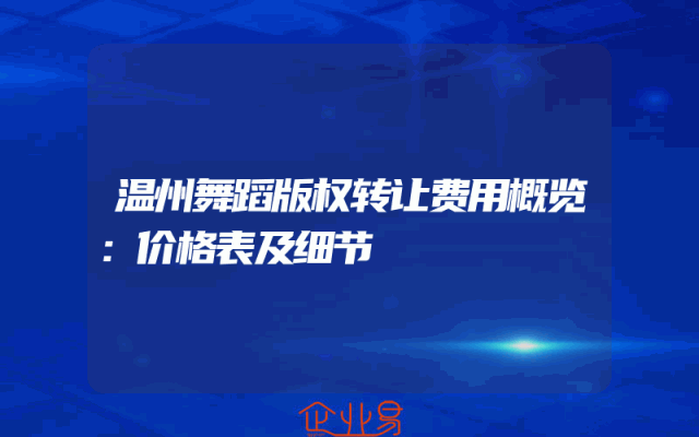 - 温州舞蹈版权转让费用概览:价格表及细节