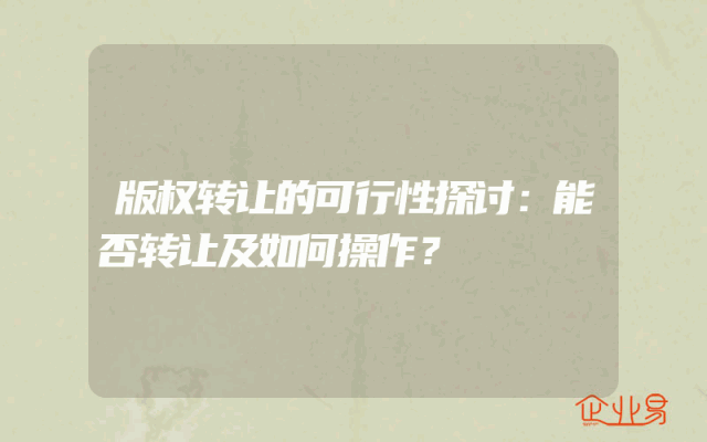 - 版权转让的可行性探讨:能否转让及如何操作?