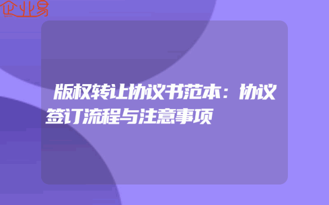- 版权转让协议书范本:协议签订流程与注意事项一、协议签订流程版权转让协议书是知识产权交易的核心文件,其签订流程严谨而重要。首先,双方需要就版权转让事项进行充分沟通,明确转让的具体内容、范围及权益。在达成一致后,开始进入正式的签订流程。第一步,