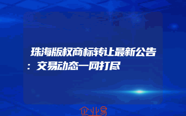 - 珠海版权商标转让最新公告:交易动态一网打尽