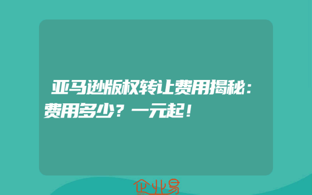 - 亚马逊版权转让费用揭秘:费用多少?一元起!