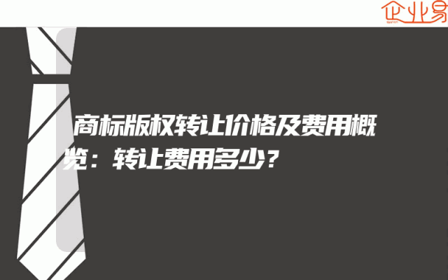 - 商标版权转让价格及费用概览:转让费用多少?一、商标版权转让价格概述在知识产权领域,商标和版权是两个重要的组成部分,它们转让过程中所涉及的费用也因此备受关注。商标版权转让的价格通常由多种因素决定,包括但不限于版权类型和范围、市场价值和市场需求