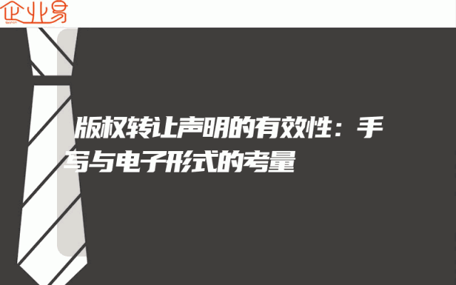 - 版权转让声明的有效性:手写与电子形式的考量一、版权转让声明的重要性在知识产权领域,版权转让是常见的法律行为。版权转让声明是确认作品著作权从一方转移到另一方的法律文件。其重要性不言而喻,它保障了创作者的权益,同时也为作品的使用和传播提供了明确