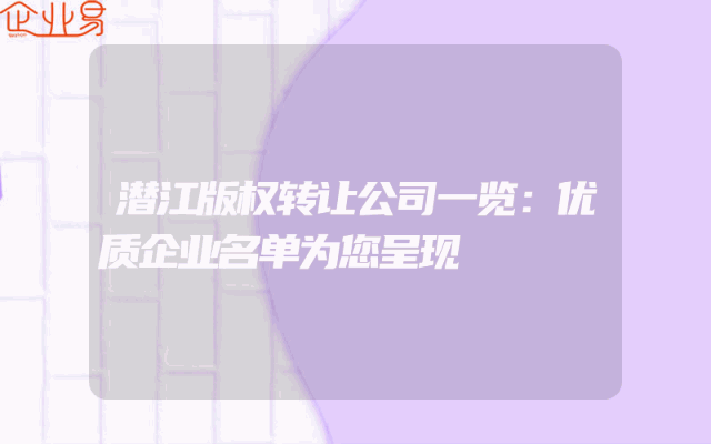 - 潜江版权转让公司一览:优质企业名单为您呈现