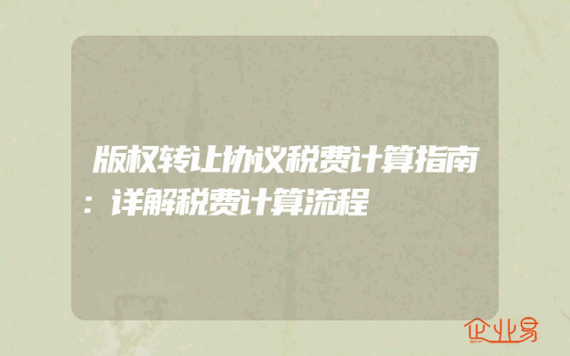 - 版权转让协议税费计算指南:详解税费计算流程一、版权转让中的税费概述在版权转让过程中,涉及税费计算是非常重要的一环。转让双方需明确各项税费及其计算方法,以确保交易的合法性和合规性。税费主要包括印花税、增值税等,其计算依据涉及转让金额、合同条款