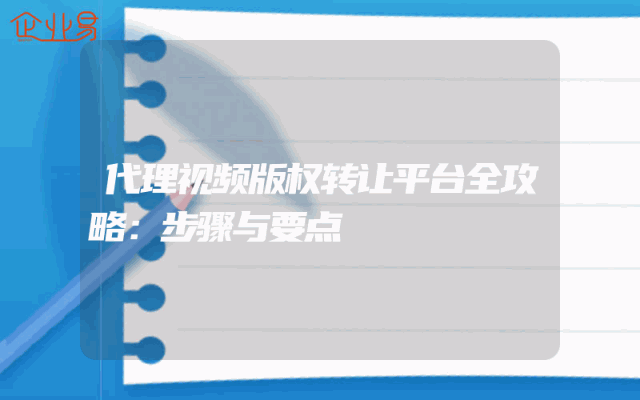 - 代理视频版权转让平台全攻略:步骤与要点解析一、了解视频版权转让平台随着数字化时代的到来,视频版权转让逐渐转向网络平台。这些平台提供了便捷、高效的交易方式,帮助版权所有者与需求方实现快速对接。首先,我们需要了解各类视频版权转让平台的特点,包括