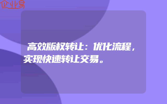 - 高效版权转让:优化流程,实现快速转让交易一、理解版权转让的重要性在知识经济时代,版权转让是知识产权领域不可或缺的一环。优化版权转让流程,不仅可以加速交易进程,还可以提高交易效率,从而推动文化创意产业的发展。对于创作者而言,快速、公正的版权转