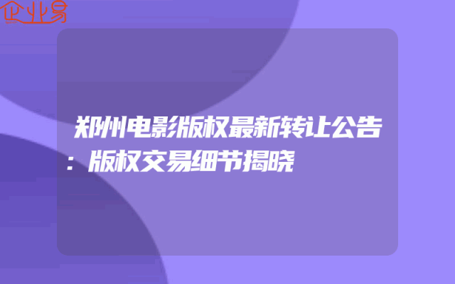 - 郑州电影版权最新转让公告:版权交易细节揭晓