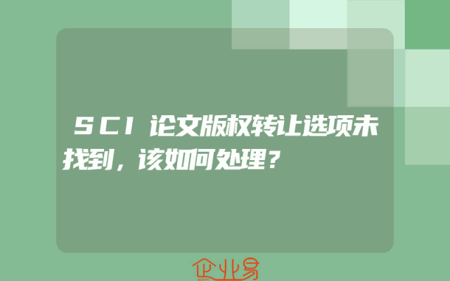 - SCI论文版权转让选项未找到,该如何处理?了解版权转让背景在学术出版领域,SCI论文的版权转让问题越来越受到关注。版权转让是作者在投稿时面临的重要选择之一,涉及到个人和学术机构的权益保障问题。然而,有时作者可能会遇到版权转让选项未找