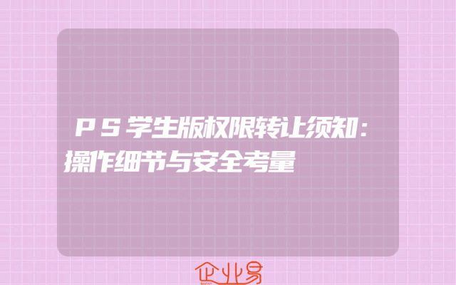 - PS学生版权限转让须知:操作细节与安全考量一、权限转让背景及意义在数字化时代,知识产权的保护尤为重要。对于PS学生版这类软件,其包含的学习资源、功能特性及更新服务等,都涉及知识产权和用户权益。当