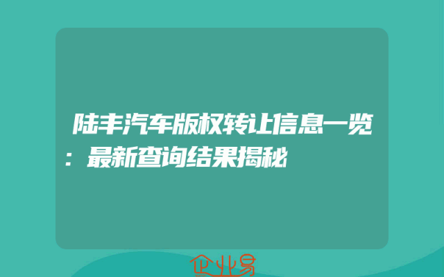 - 陆丰汽车版权转让信息一览:最新查询结果揭秘