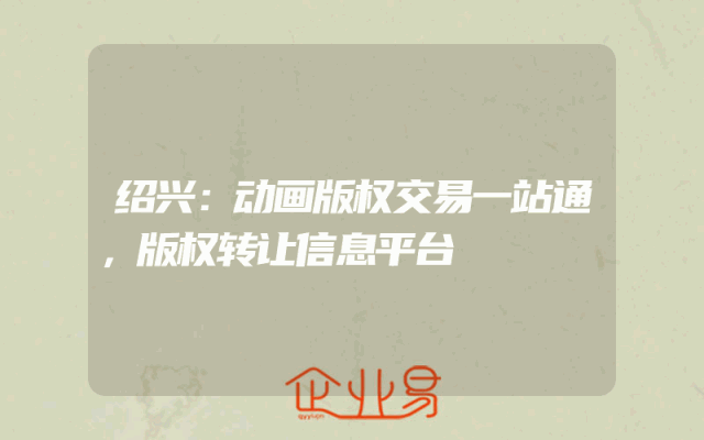 - 绍兴:动画版权交易一站通,版权转让信息平台