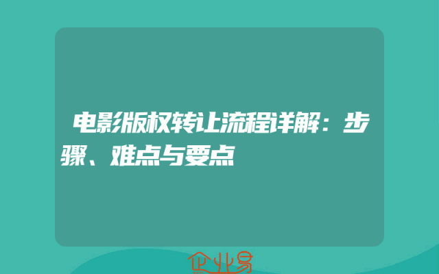 - 郑州电影版权交易信息平台:专业转让电影版权