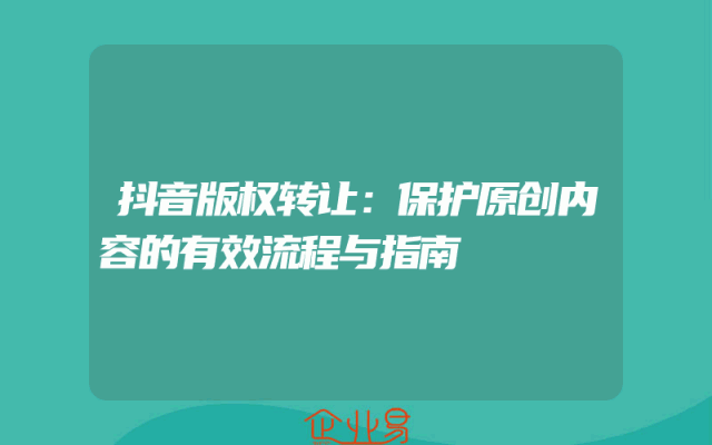 - 抖音版权转让:保护原创内容的有效流程与指南