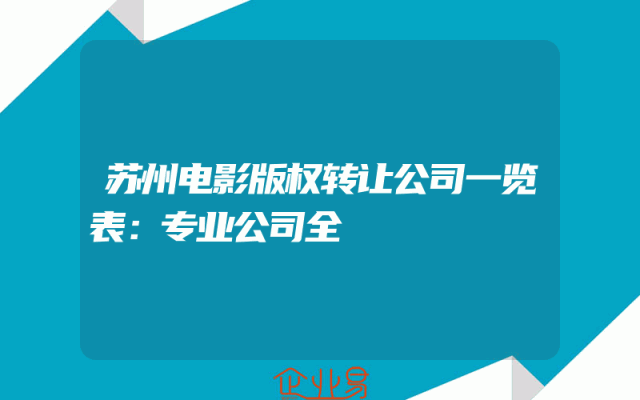 - 苏州电影版权转让公司一览表:专业公司全