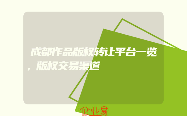 - 成都作品版权转让平台一览,版权交易渠道