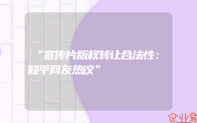 - “宣传片版权转让合法性:知乎网友热议”