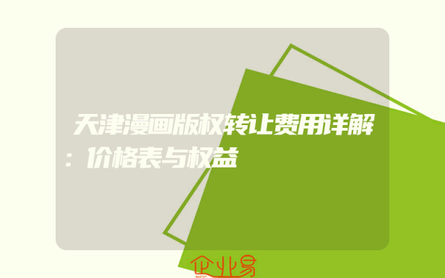 - 天津漫画版权转让费用详解:价格表与权益