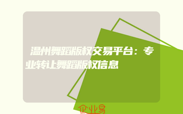 - 温州舞蹈版权交易平台:专业转让舞蹈版权信息
