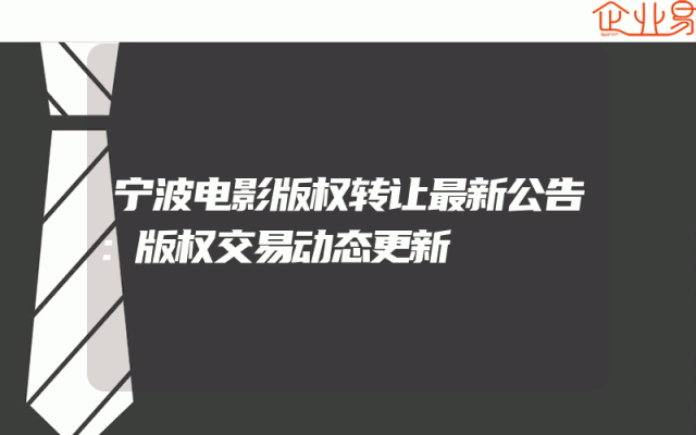 - 宁波电影版权转让最新公告:版权交易动态更新