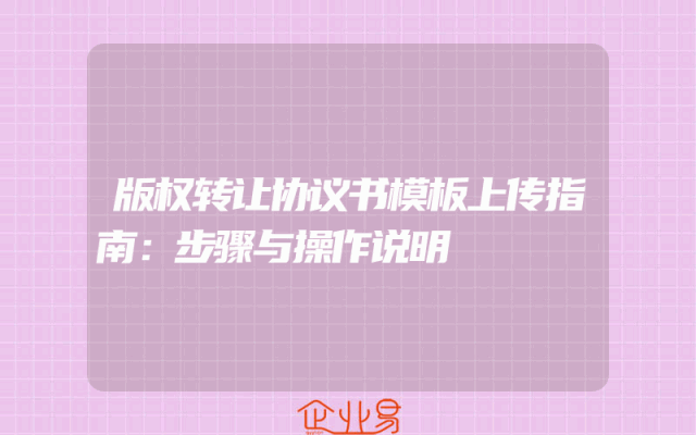 - 版权转让协议书模板上传指南:步骤与操作说明