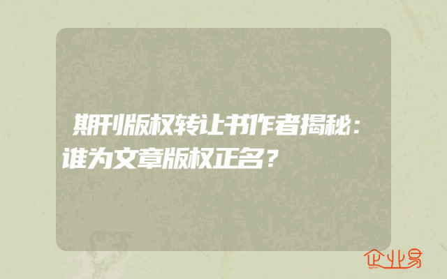 - 期刊版权转让书作者揭秘:谁为文章版权正名?