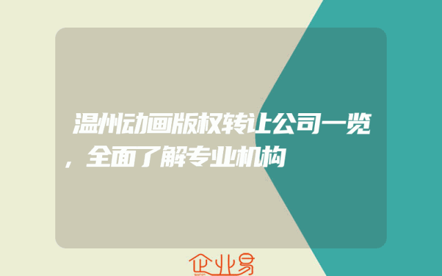 - 温州动画版权转让公司一览,全面了解专业机构