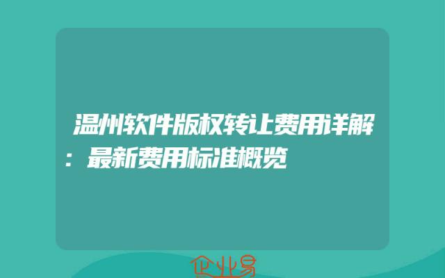 - 温州软件版权转让费用详解:最新费用标准概览