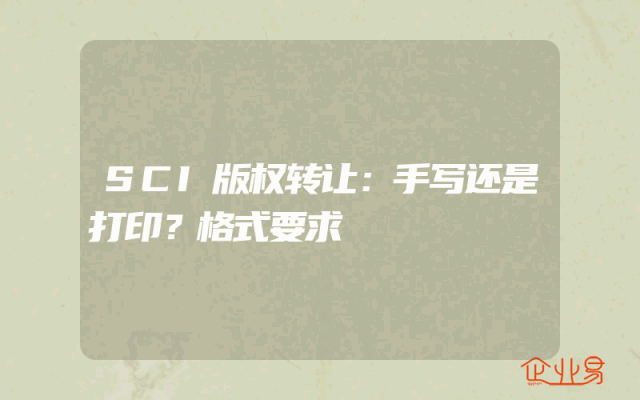 - SCI版权转让:手写还是打印?格式要求解析一、版权转让的重要性及基本常识在学术出版领域,SCI版权转让是一个重要的环节。版权转让涉及到作者对其科研成果的权益保护,也关系到学术成果的广泛传播和合理利用。在版权转让过程中,作者需明确了解版权转让