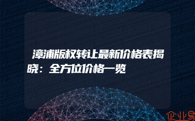 - 漳浦版权转让最新价格表揭晓:全方位价格一览