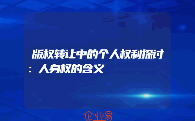 - 版权转让中的个人权利探讨:人身权的含义