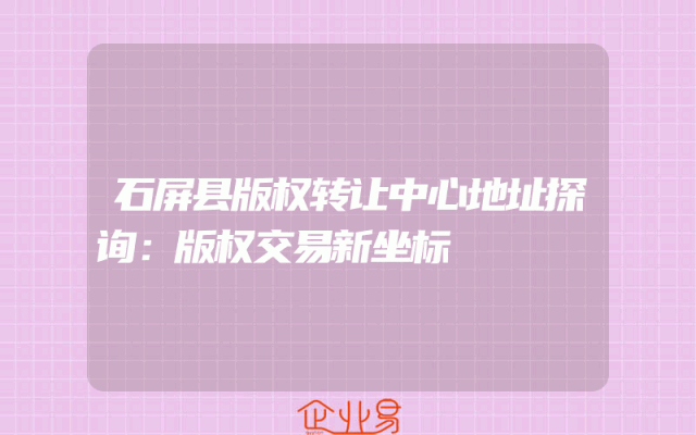- 石屏县版权转让中心地址探询:版权交易新坐标