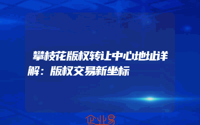 - 攀枝花版权转让中心地址详解:版权交易新坐标