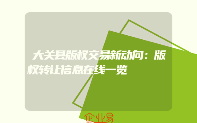 - 大关县版权交易新动向:版权转让信息在线一览