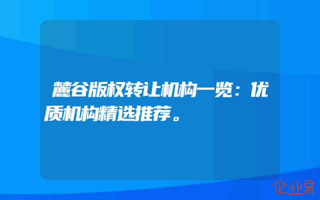 - 麓谷版权转让机构一览:优质机构精选推荐。